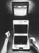 | U-Force (Broderbund Software)- Like the Power Glove, this type of controller responds by hand movements. But unlike the glove, there is nothing you have to wear. You just put the device in front of you and move your hands as if you were actually in the game itself! There are also Start and Select buttons on the bottom, as well as two switches for turbo mode or rapid fire, although you can't set the rate. The normal way to set it up is to put it in front of your screen, and have one half of it laying flat on the table, and the other half upright or slightly tilted, (like you were setting up a laptop computer). | ![]() |