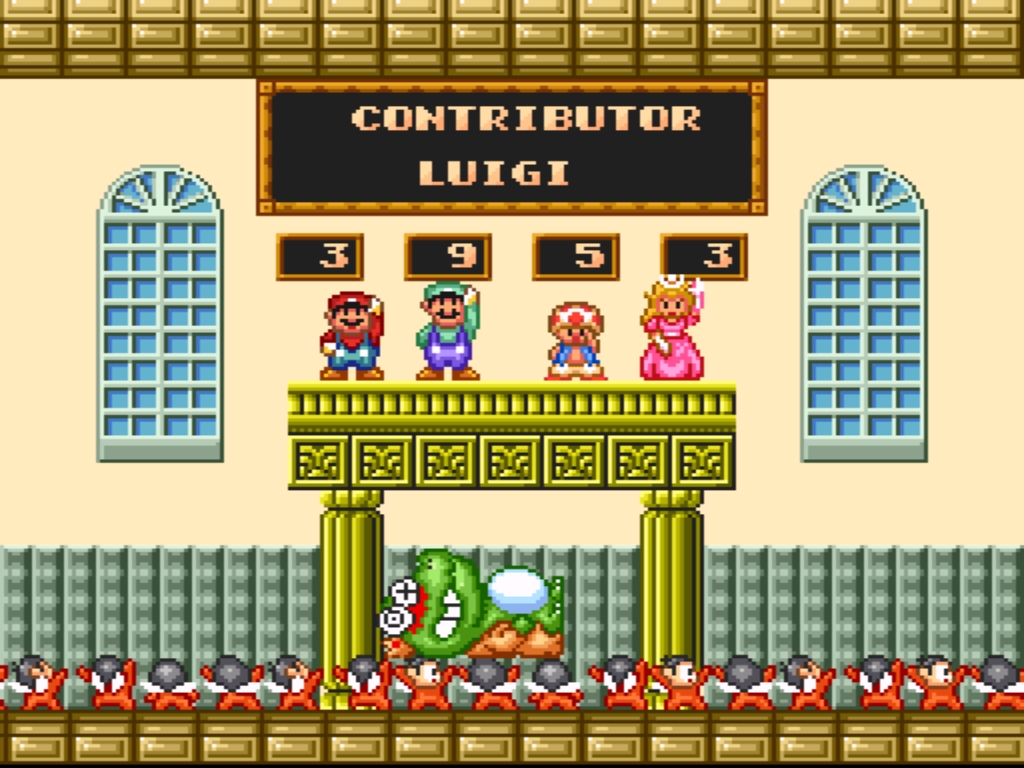 | Replay Value | 10 | A definite 10 for this game! Why in the world would they remake the old classics for the SNES if none of the games had any replay value? This game provides a nice return to the familiarity of the 8-bit Mario games, added with a bit of 16-bit (no pun intended) flair! |