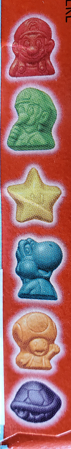 I saw these in grocery stores in 2020 and I also have to say that they taste like your run-of-the-mill fruit snack. They come in 6 different shapes- Mario (bust), Luigi (bust), Starman, Yoshi (bust), Toad (bust), and Koopa shell. Also, interesting to note is that I always find more Marios in each pouch than Luigis. I don't know if that's typical or unique only to my experience.