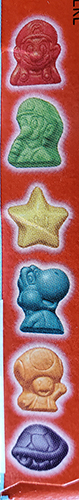These kind of came out of nowhere. These fruit snacks feature Mario, Link, and Donkey Kong, and they come in lemon, lime, orange, grape, and cherry flavors, with the shapes of Mario's head, Luigi's head, Power Star, Peach's head, Link's head, and DK's head!