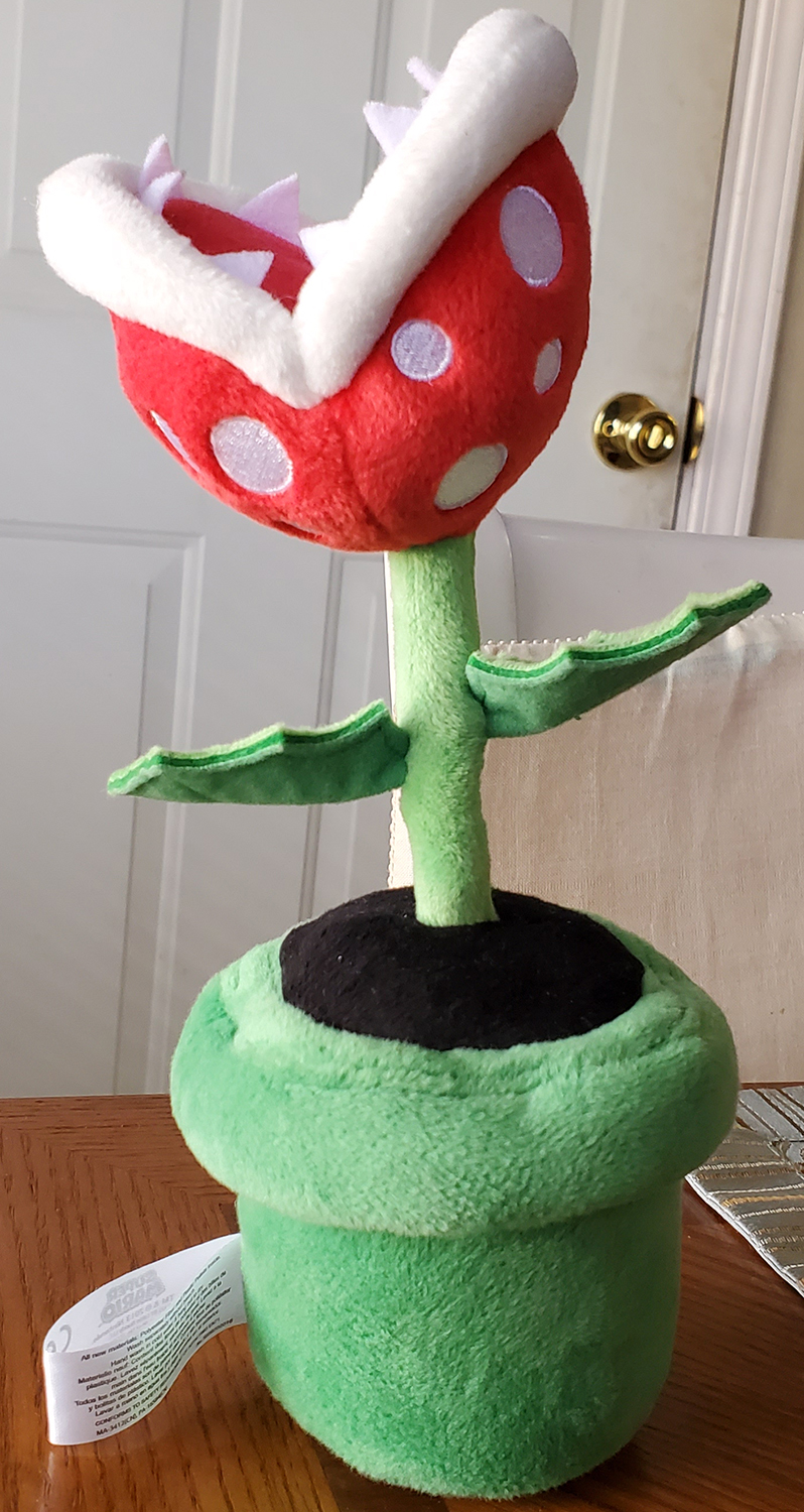 This Little Buddy Piranha Plant plushie came out in 2013. Its stem is stiff though bendable so one could get the head to pose in various directions, either straight up like the classic 8-bit Piranha Plant enemies or facing sideways like in more modern Mario games.