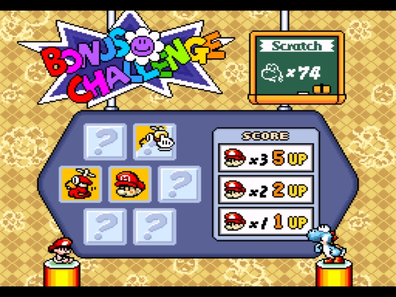 | Challenge | 10 | Getting through the levels with minimal damage can be a frustration, indeed. But nevertheless, there's never a boring moment on Yoshi's Island with all the obstacles, challenges, and puzzles. |